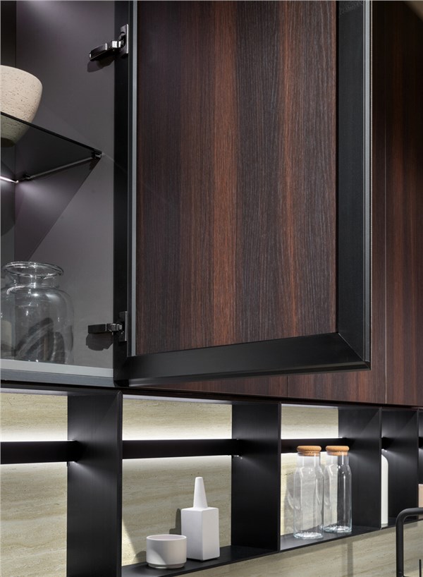 Queste soluzioni sono realizzate con ante in stratificato HPL, un materiale che supera il legno naturale quanto a resistenza grazie al particolare trattamento ad alte temperature cui viene sottoposto il laminato. Ogni anta è composta da un telaio in alluminio leggero ma robusto, che protegge e valorizza il frontale lungo tutto il suo perimetro, specialmente negli angoli, sintesi perfetta di competenza tecnica e creatività progettuale.