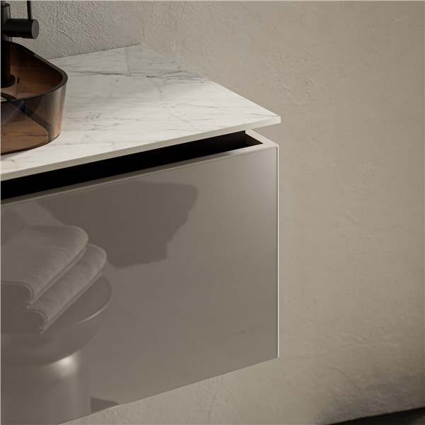 Questo pannello di nuova generazione, composto da PMMA (polimetilmetacrilato) e definito dal produttore come “vetro organico”, rappresenta una soluzione d’avanguardia sia dal punto di vista estetico sia funzionale. Grazie alla combinazione di polvere di silicio e PMMA trasparente, GLAKS® offre un effetto di purezza e profondità inediti, che si estendono su tutto lo spessore del pannello, valorizzando così l’aspetto dei frontali e conferendo una straordinaria raffinatezza all’ambiente bagno.